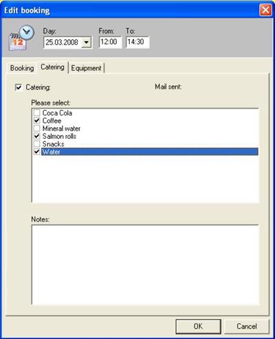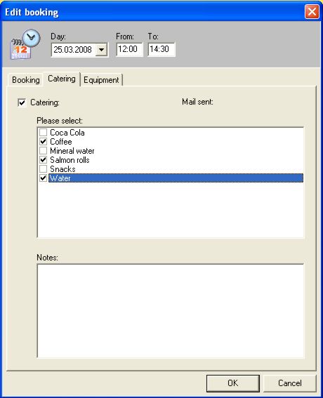 In notes you can add additional information for catering such as “Please prepare champagne reception for the guests at 9.00 h.”