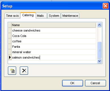 Here, global entries for the entire conference center can be made. All kind of drinks and food can be implemented and updated anytime. Just use the 2 symbol-buttons to handle everything.