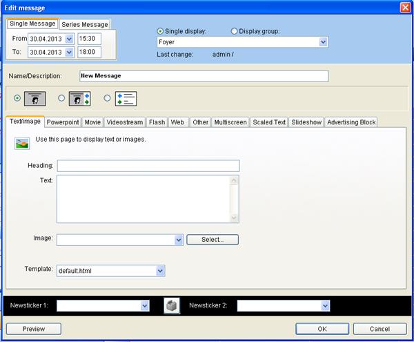 In the middle the flag “text/image” is selected. Now enter all parameter for the desired information. Please do the following: